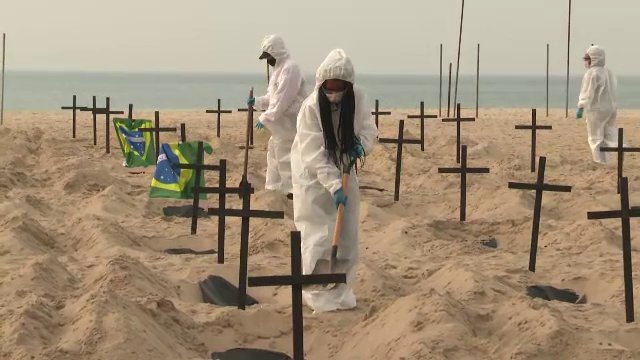 Peisaj macabru pe faimoasa plajă Copacabana din Rio de Janeiro. Mai mulţi activişti ...