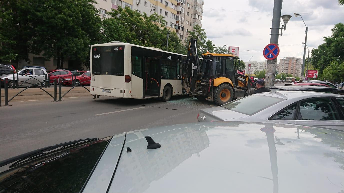 Un autobuz cu călători a fost lovit de un excavator în Sectorul 3 din Bucureşti. ...