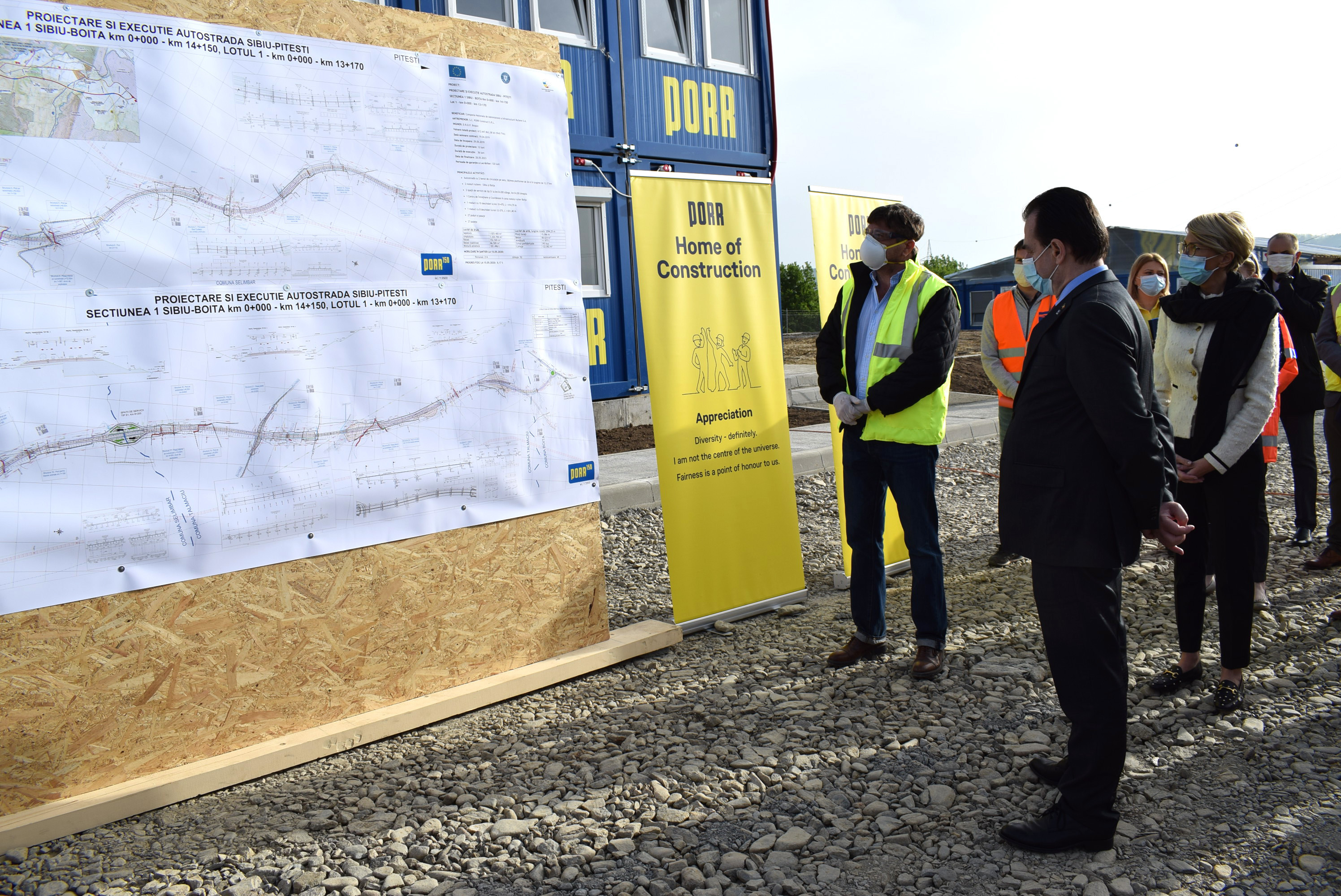 Premierul Ludovic Orban a vizitat, vineri, șantierul autostrăzii Sibiu-Pitești, alături ...