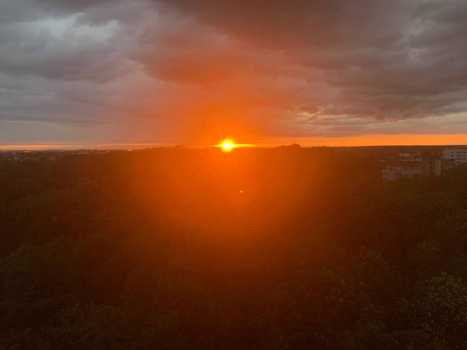 Cerul Capitalei s-a aprins luni seară, când soarele a colorat norii în nuanțe ...