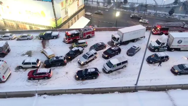 Un val de ninsoare cu totul neaşteptat a dus la un accident în lanţ, pe o şosea din ...