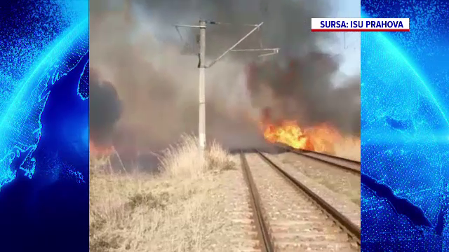 Flăcări violente au cuprins o porțiune de cale ferată în Prahova.
