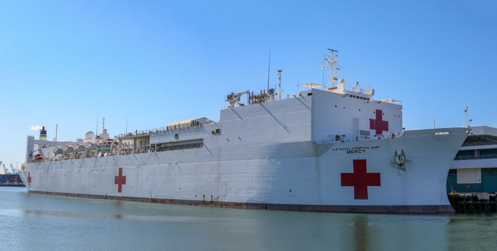 O navă-spital militară cu 1.000 de paturi, USNS Comfort, a sosit luni în portul New ...