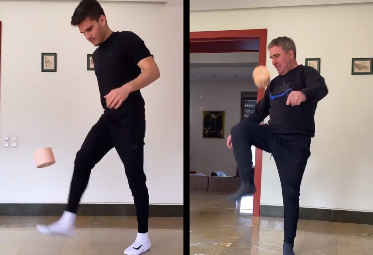 Gheorghe Hagi şi fiul său Ianis au participat, vineri, la provocarea de a jongla cu rola ...