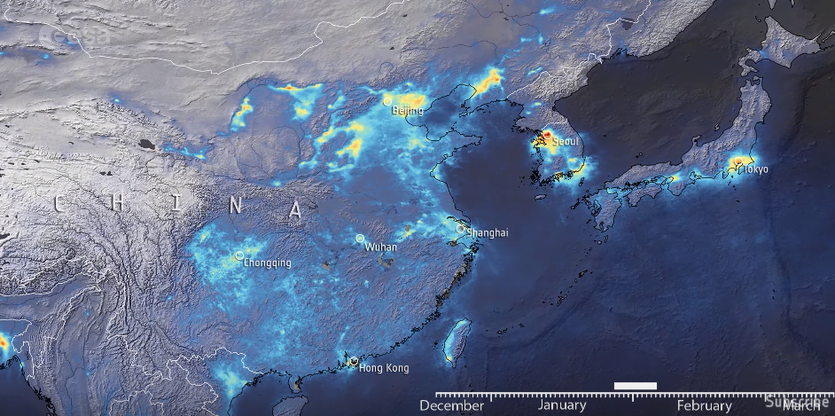 Poluarea atmosferică cu dioxid de azot (NO2), un gaz emis de autovehicule, centrale ...