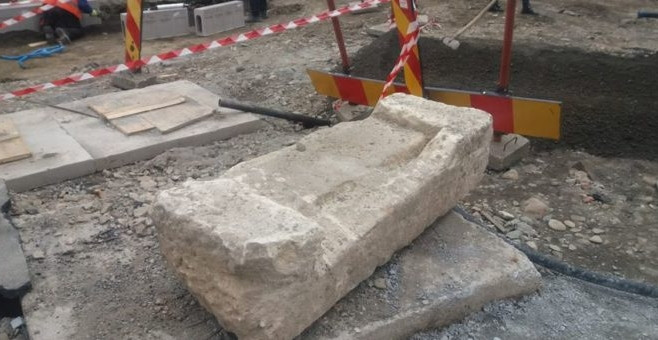 Un fragment arhitectural din piatră care făcea parte dintr-un templu roman vechi de peste ...