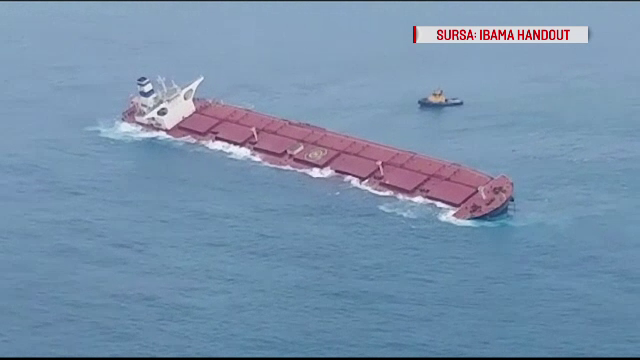 O navă imensă de tip cargo stă să se scufunde în largul coastelor Braziliei.