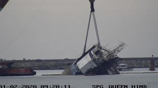 Operaţiunea de ridicare a navei încărcate cu oi, care a eşuat la sfârşitul ...