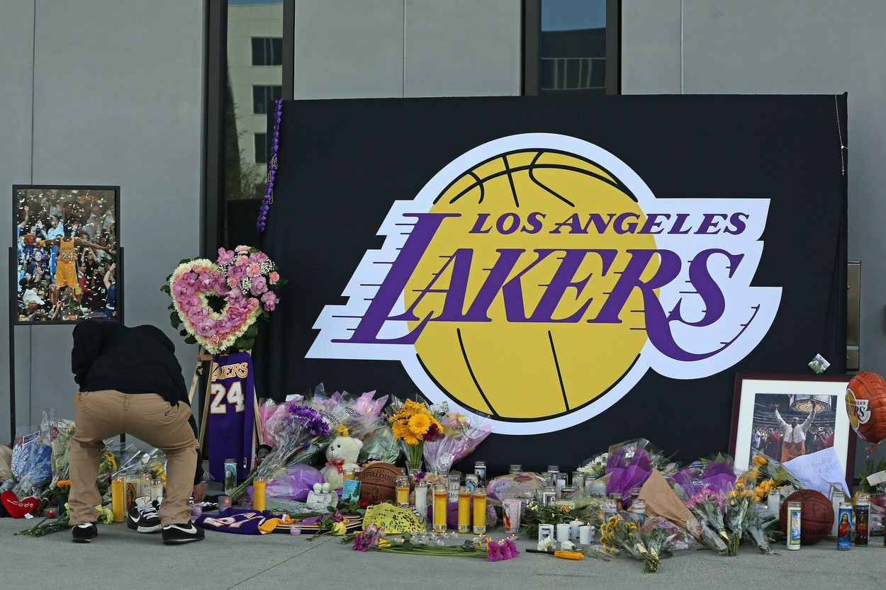 Altar în memoria lui Kobe Bryant, la sediul echipei Los Angeles Lakers