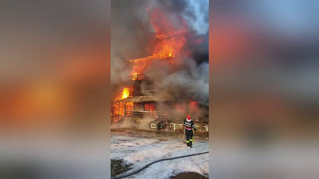 Un incendiu violent a izbucnit, duminică, la o pensiune din Șimon, judeţul Braşov.
