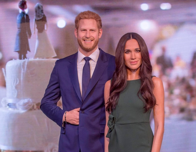 Figurile din ceară ale prinţului Harry şi soţiei lui, Maghan Markle, au fost ...