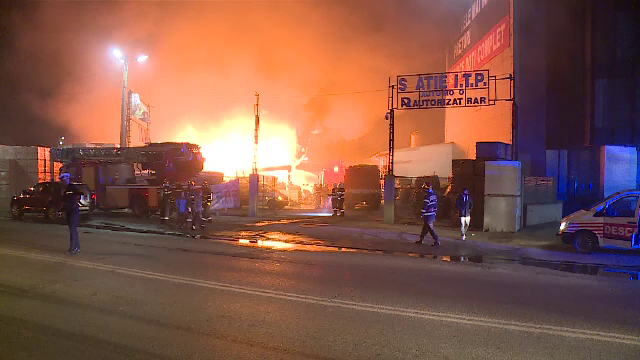 Un incendiu puternic a cuprins joi seară un service auto şi un depozit de materiale de ...