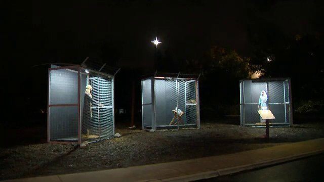 O clasică scenă de Crăciun a fost modificată în faţa unei biserici din statul ...