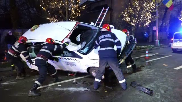 Un taximetru în care se aflau trei clienți s-a răsturnat aseară pe o stradă din ...
