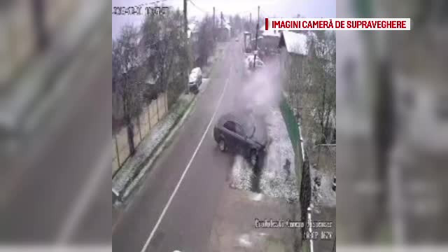 Accident în lanț, surprins de camerele de supraveghere, în localitatea ...