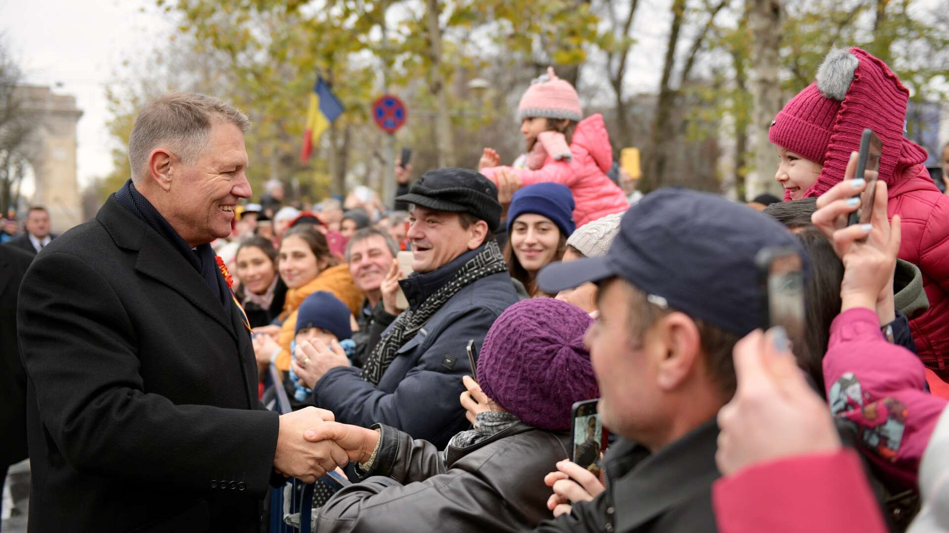 Preşedintele Klaus Iohannis i-a salutat, la finalul paradei militare, pe o parte dintre ...