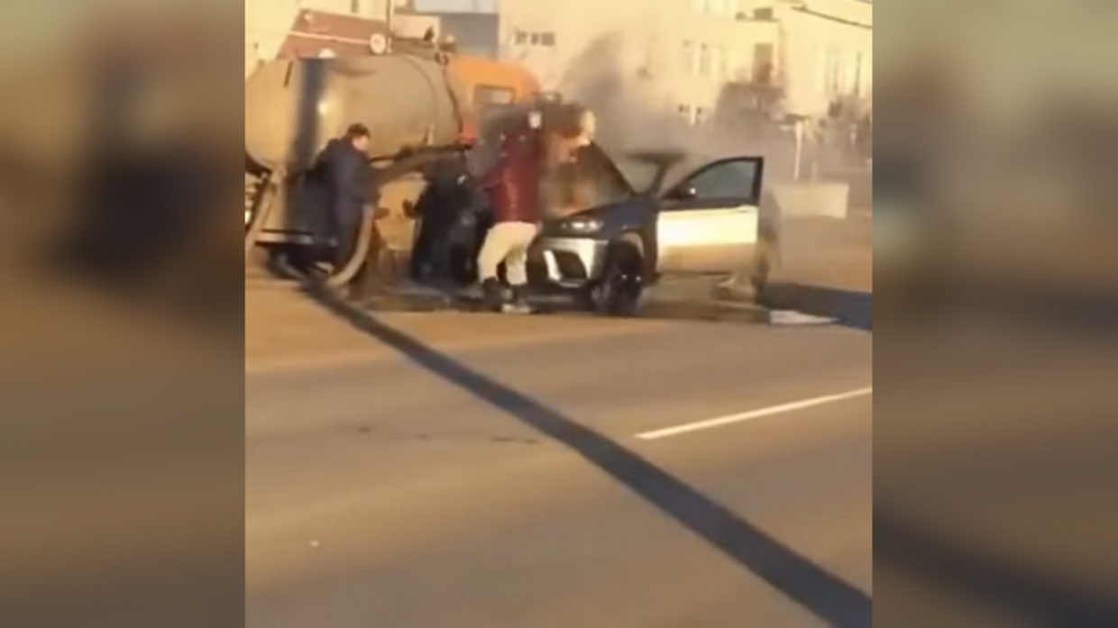 Un BMW X6, în flăcări, a fost stins cu ajutorul unei vidanje. Incidentul devenit ...