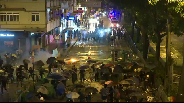 Noapte violentă pe străzile din Hong Kong, acolo unde forţele de ordine încearcă, ...