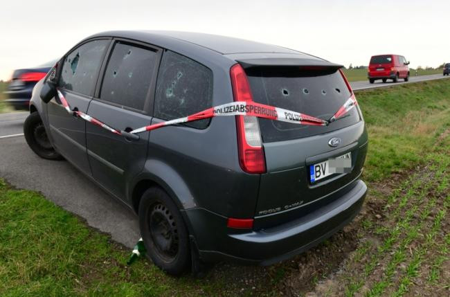Un autoturism cu numere de România ce pare găurit de gloanțe, abandonat de aproape ...