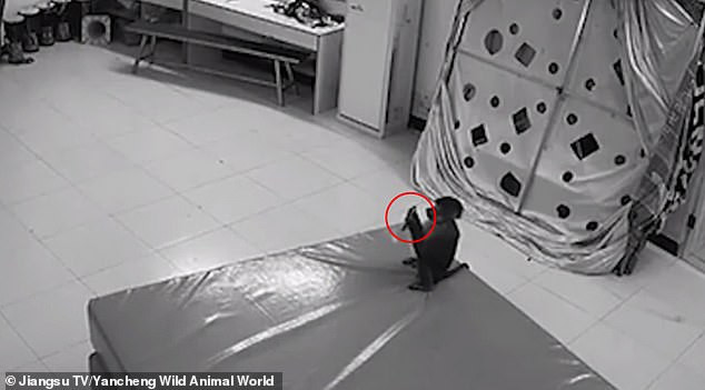 O maimuță dintr-o grădină zoologică din China a fost surprinsă de camerele de luat vederi ...