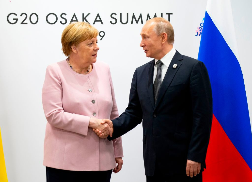 Cancelarul german Angela Merkel şi preşedintele rus Vladimir Putin au convenit luni că ...