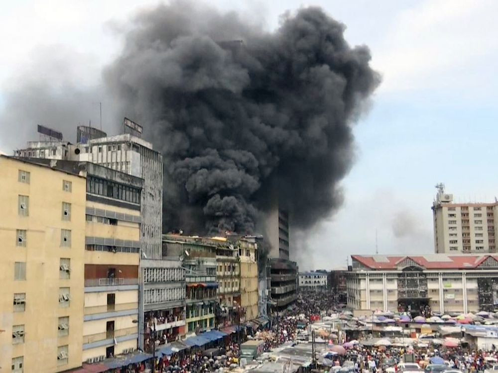 O clădire de cinci etaje din Lagos, arde puternic de mai multe ore, după ce un incediu a ...