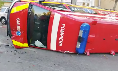 O ambulanţă SMURD aflată în misiune s-a răsturnat, duminică, pe o stradă din ...