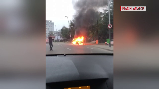 Un autoturism a ars ca o torţă joi, în Bacău, chiar lângă spitalul Judeţean ...