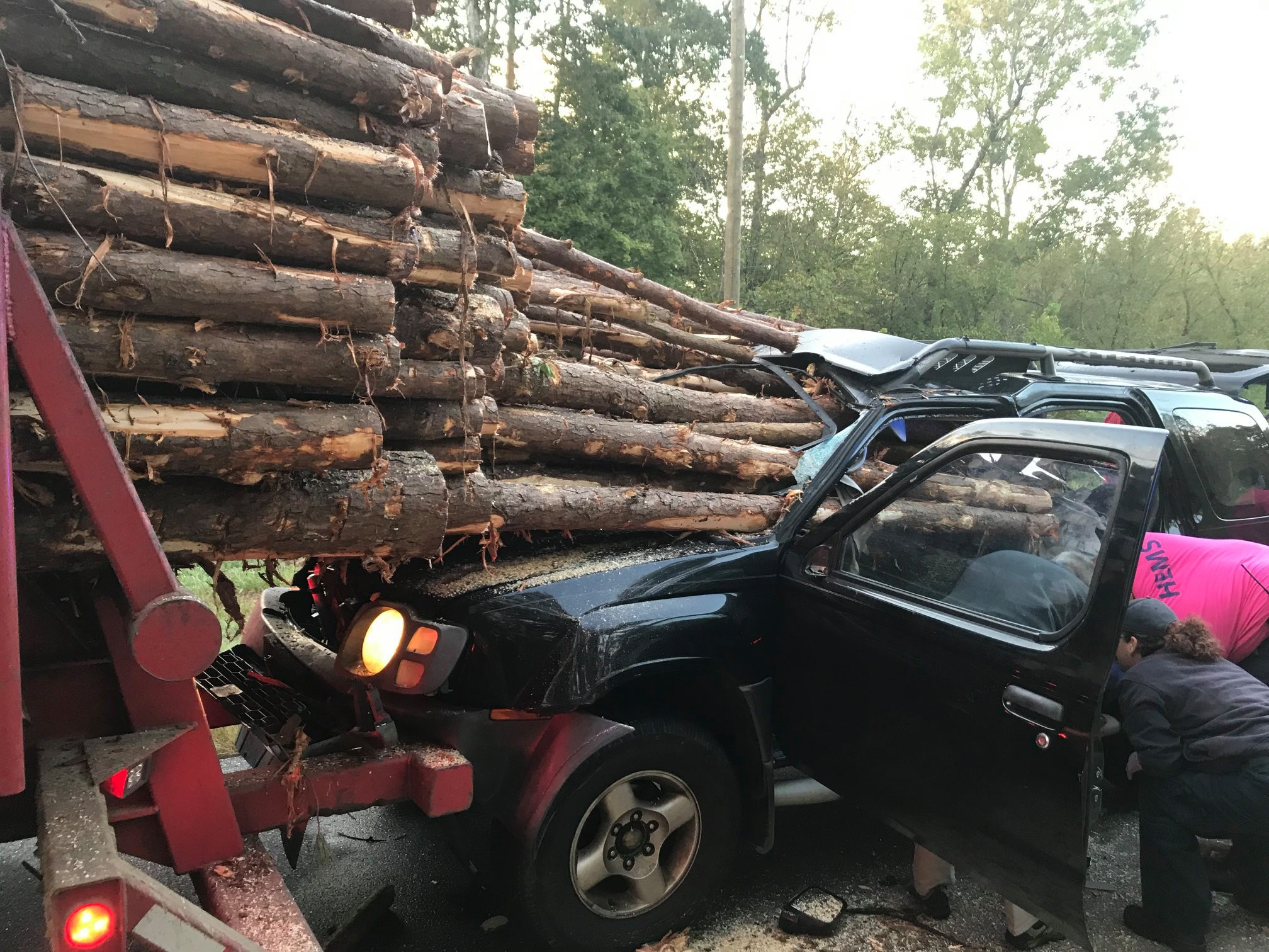 Un șofer din Statele Unite a supraviețuit miraculos după ce mai multe trunchiuri de ...