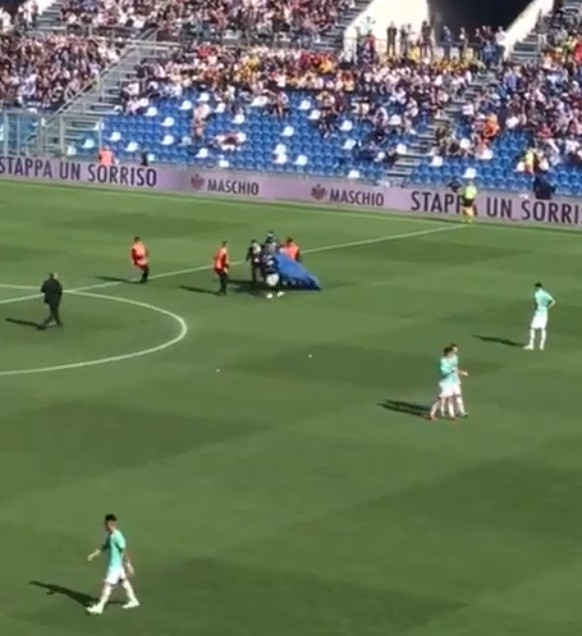 Un paraşutist a aterizat pe teren, duminică, în timpul meciului Sassuolo – ...