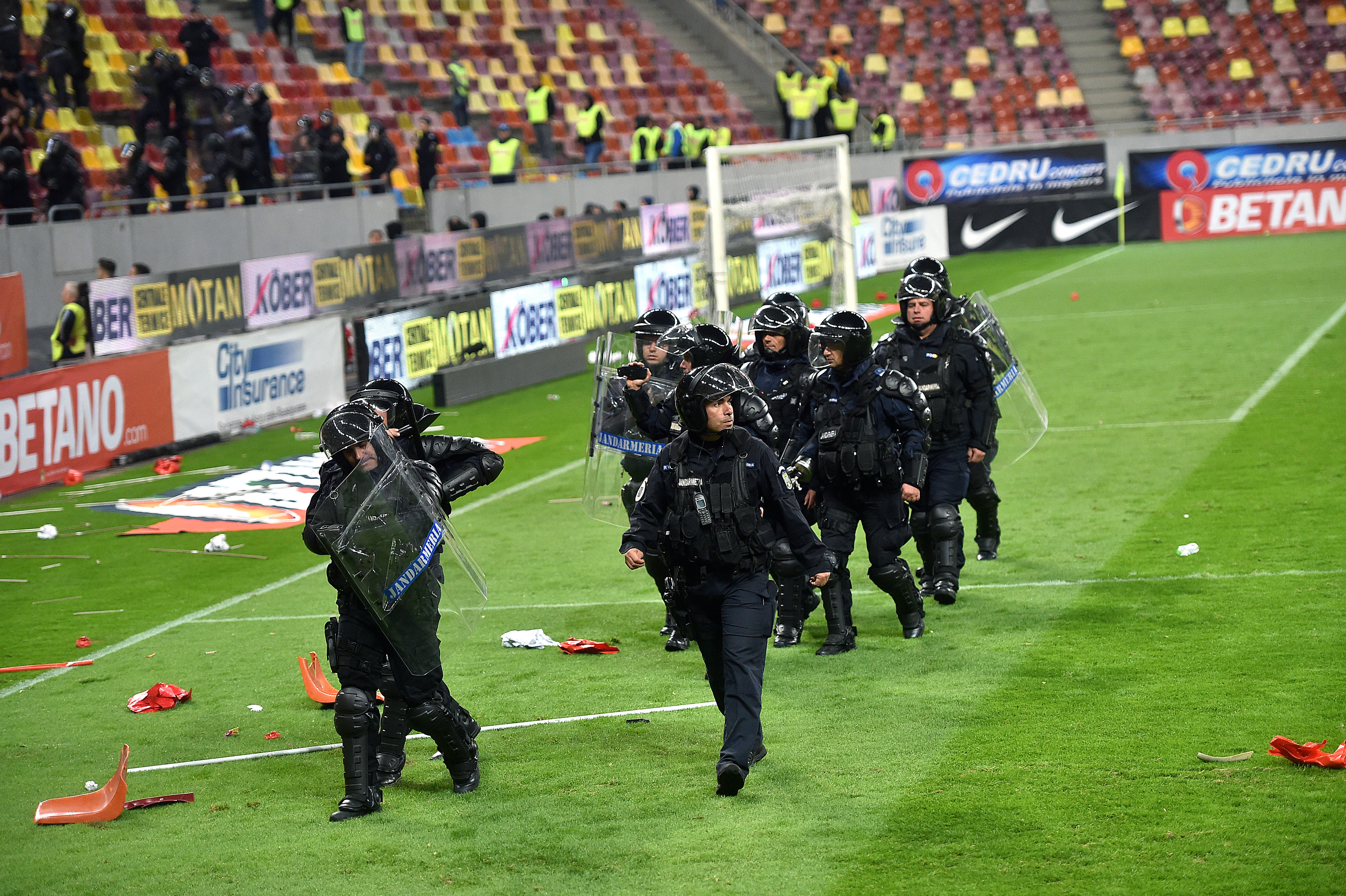 Fani dinamovişti şi ai FCSB au intrat pe teren după finalul derbiului de pe Arena ...