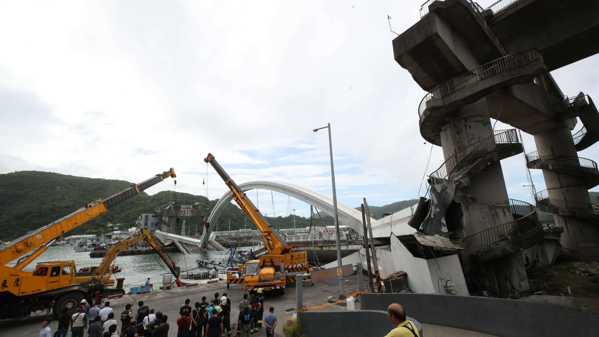 Un pod din Taiwan s-a prăbușit peste mai multe bărci, lăsând mai multe persoane ...
