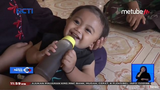 O familie din Indonezia își hrănește copilul de un an în fiecare zi cu cafea, ...