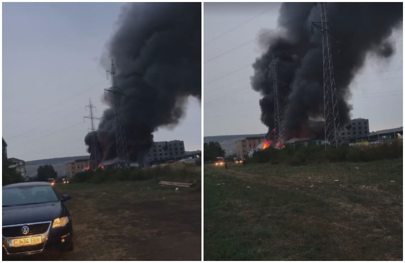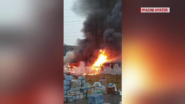 Un incendiu puternic a izbucnit, marți dimineață, la un depozit din localitatea ...