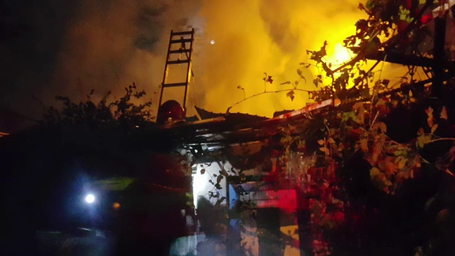A fost panică, duminică, pe o stradă din Braşov după ce o casă a fost cuprinsă de flăcări.