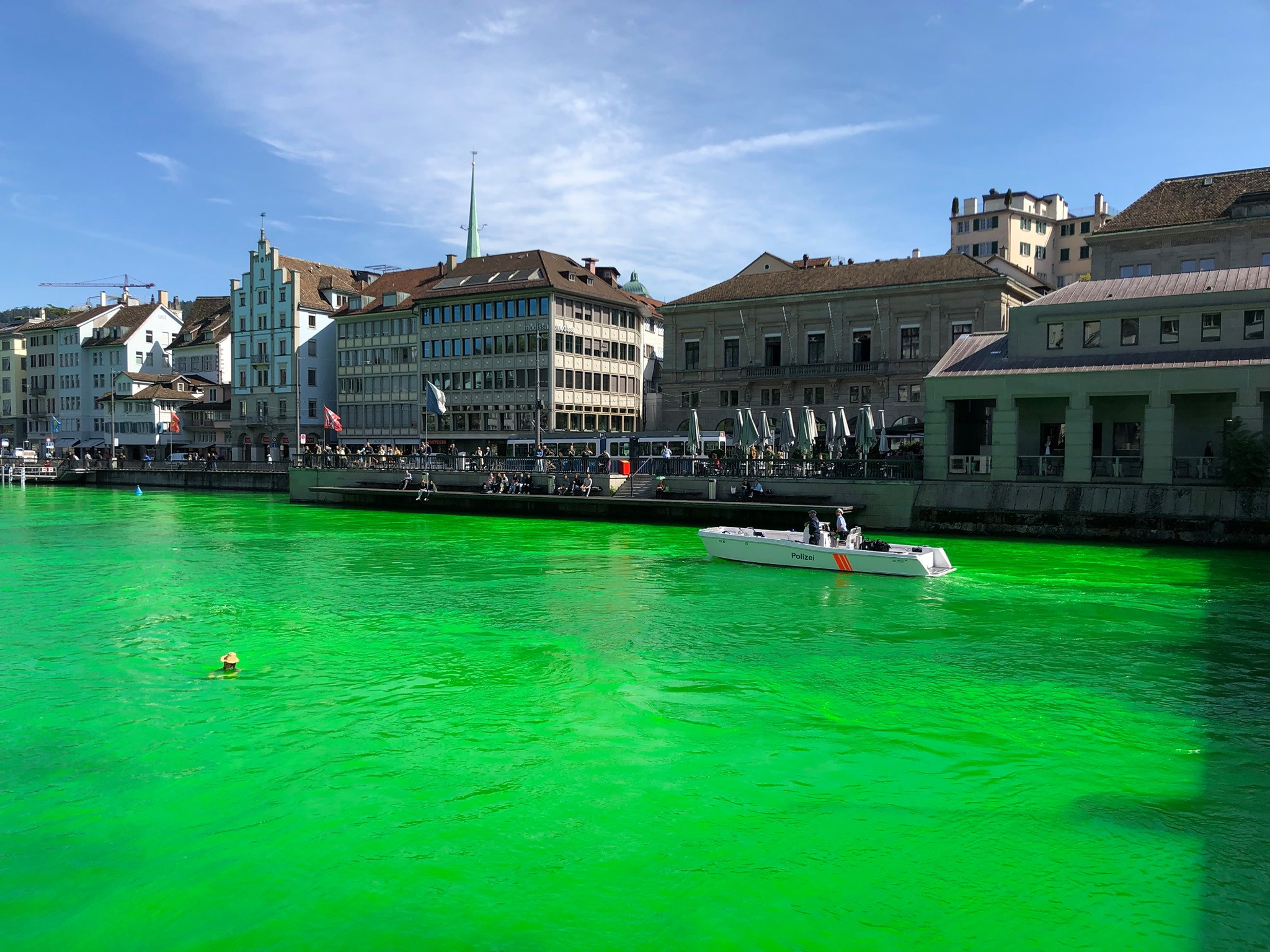 Râul care străbate Zurich, din Elveţia, a fost colorat marţi în verde ...