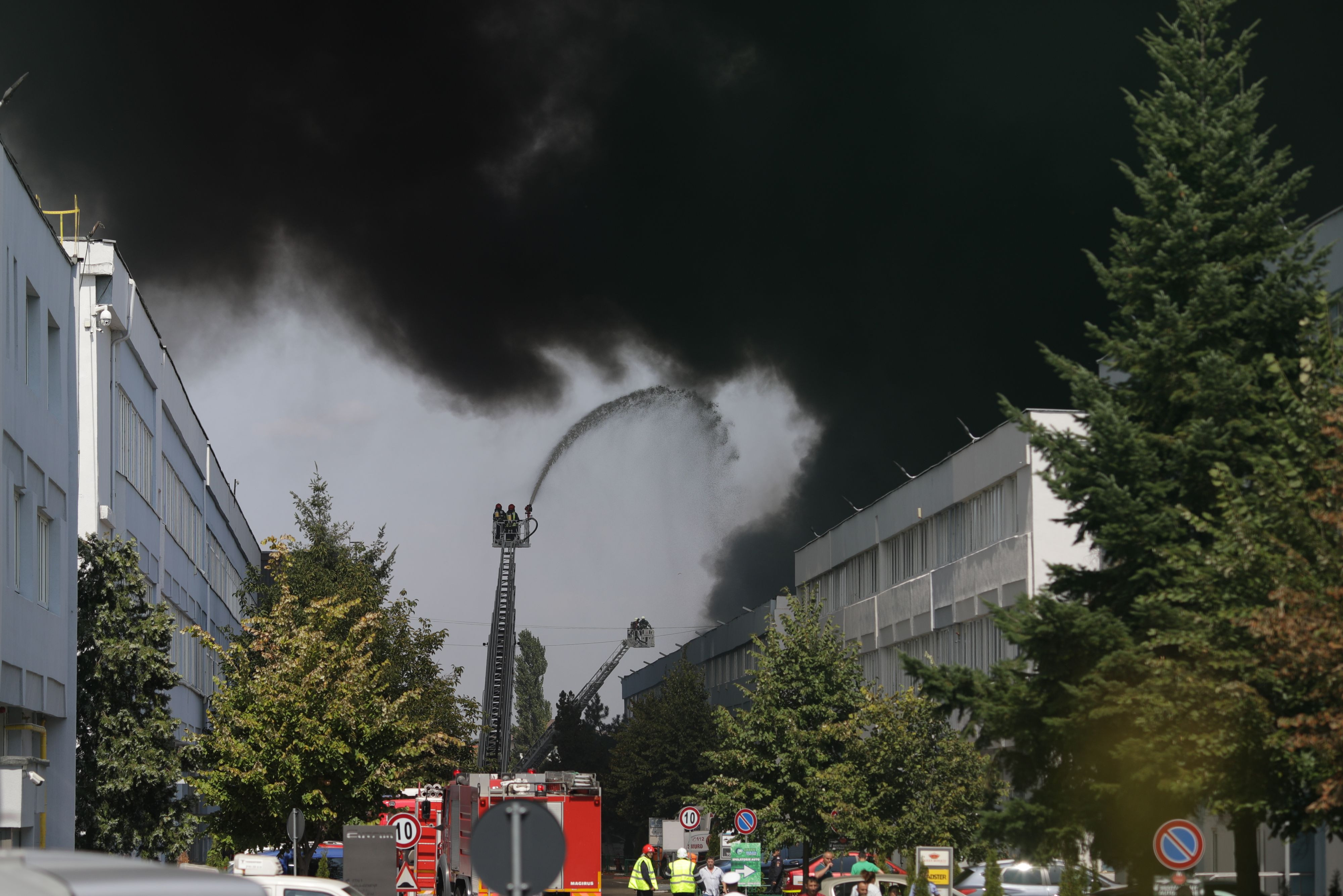 Un incendiu puternic a izbucnit, vineri, la o hală industrială din nordul Capitalei.