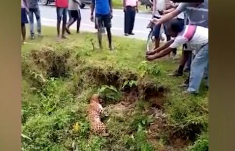 Un leopard rănit a pus pe fugă un grup pe persoane care îl înconjurase pentru ...