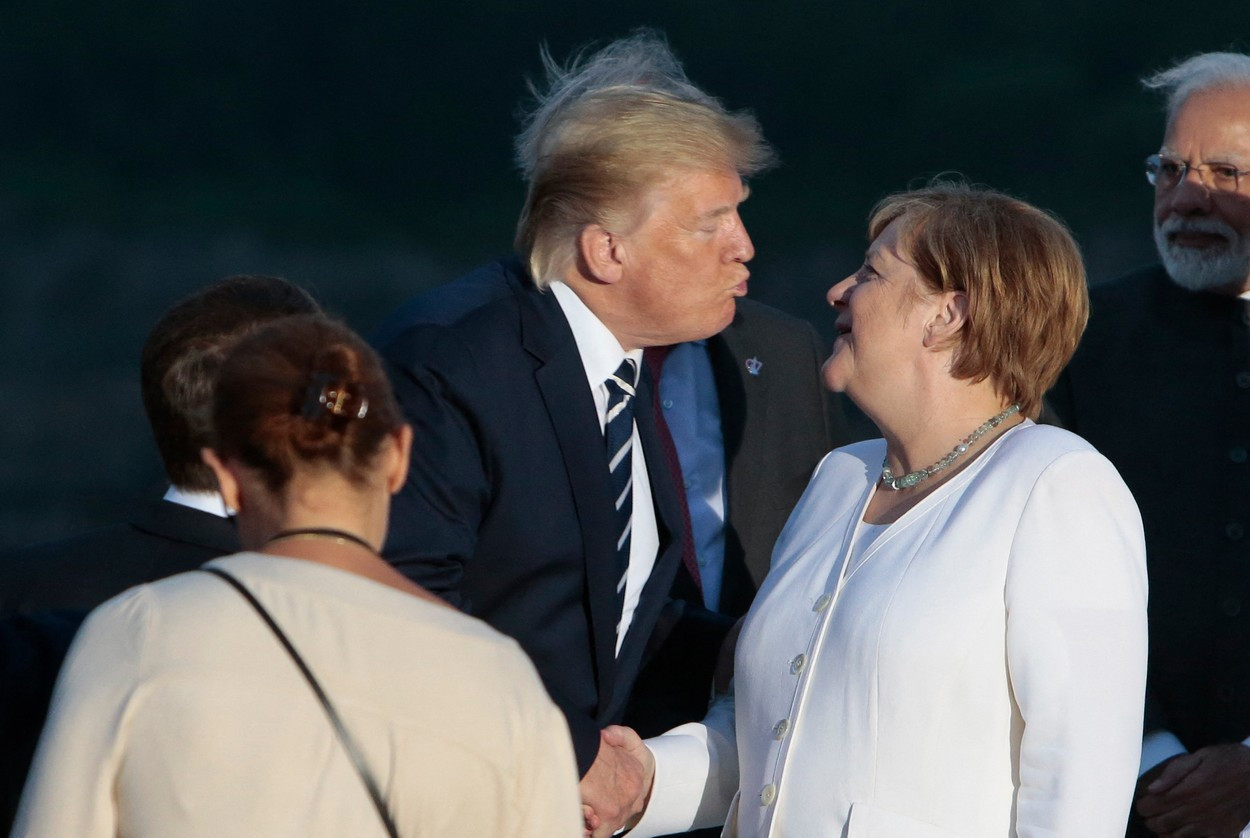 Trump și-a țuguiat buzele pentru a o pupa pe Merkel, la summitul G7 din Franța
