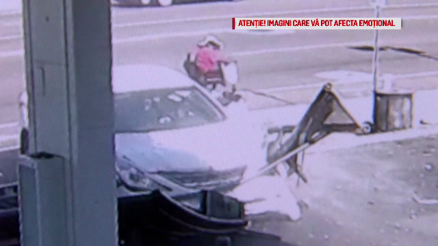 O bătrână aflată într-un scaun cu rotile a scăpat cu bine dintr-un accident ...