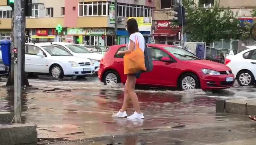 Străzile din București au fost inundate, după o furtună care a durat aproximativ jumătate ...