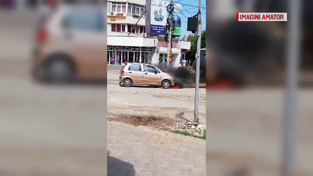 O maşină a fost cuprinsă de flăcări în Bacău. Şoferul, aflat în trafic, a ...