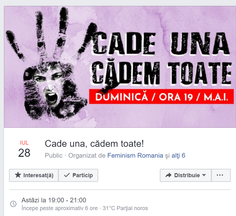 Un protest intitulat „Cade una, cădem toate” este anunțat pentru duminică ...