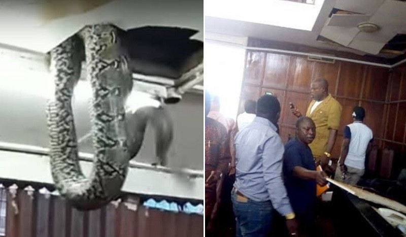 Un şarpe a băgat spaima în zeci de oameni, după ce a căzut din tavanul unei ...
