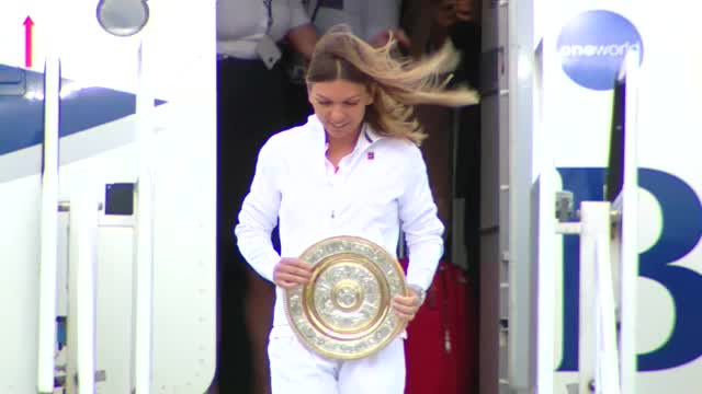 Simona Halep, triumfătoare la Wimbledon, a sosit în România cu o aeronavă ...