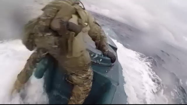 Acțiune periculoasă. Doi soldați americani au sărit pe un submarin plin cu droguri