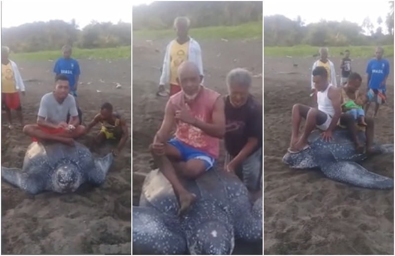 O înregistrare șocantă cu localnici care chinuie o broască țestoasă marină uriașă, ...