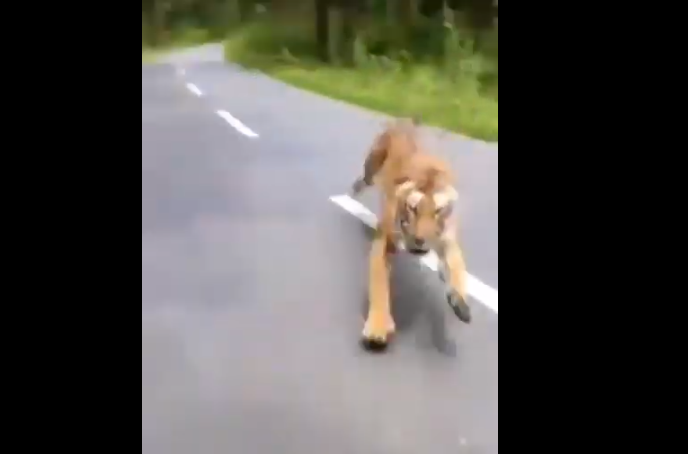Un motociclist a scăpat teafăr, ca prin urechile acului, după ce un tigru a ieșit din ...