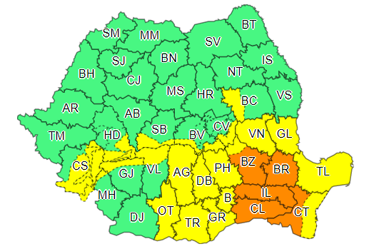 Meterologii au emis marți dimineață noi coduri de ploi torențiale, vijelii, dar și o ...