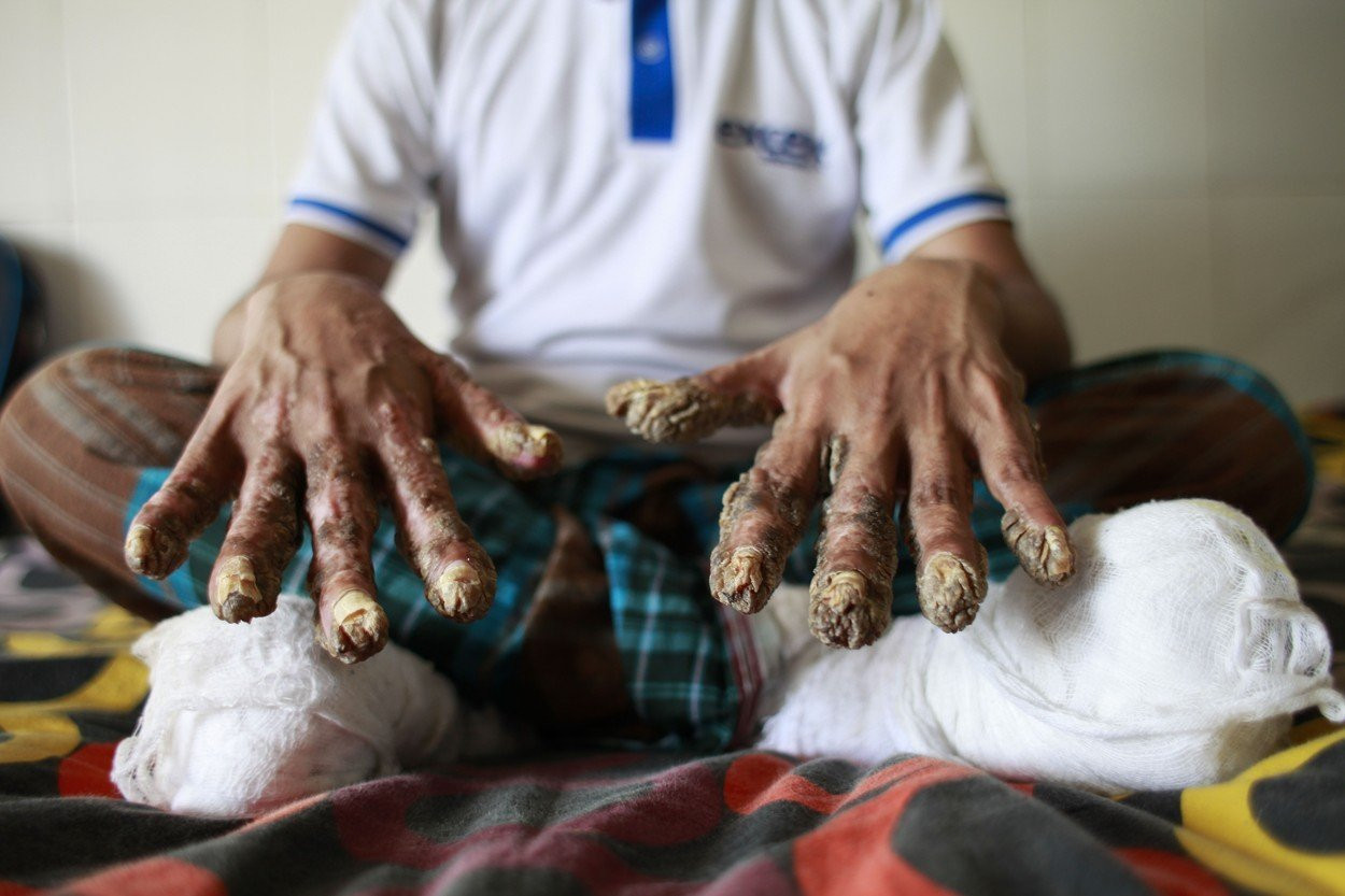 Un bărbat din Bangladesh, supranumit "Omul-arbore" din cauza membrelor sale ...